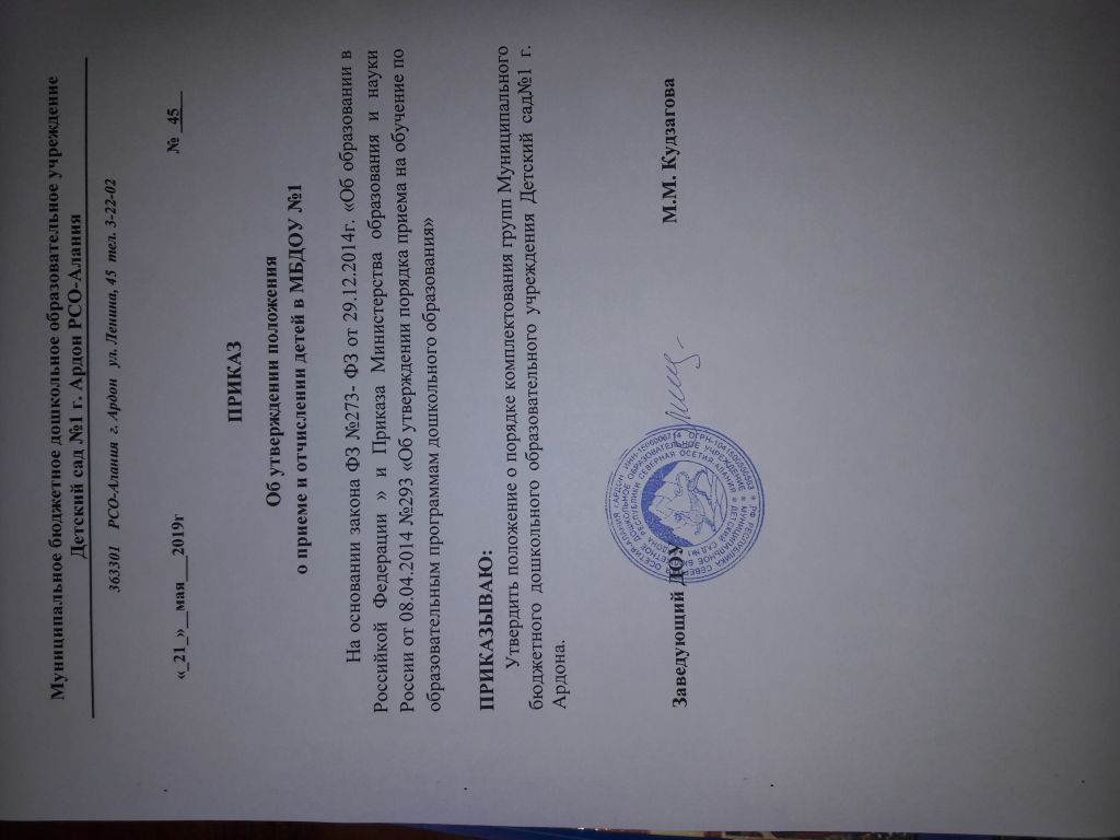 Правила приёма на обучение по ОПДО в МБДОУ №1г. Ардон Документ подписан электронной подписью Серийный номер 487739999896220766354777 Заведующий Кудзагова Мая Мухтаровна Дата подписания документа 28.03.2022 22:53:54 (скачать) (посмотреть) (текст документа)